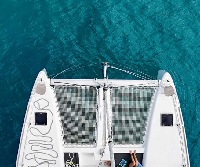 All the running rigging, including the overlapping genoa’s sheets and traveler, are also right there, organized in conjunction with a trio of Harken electric winches and a suite of Spinlock clutches.