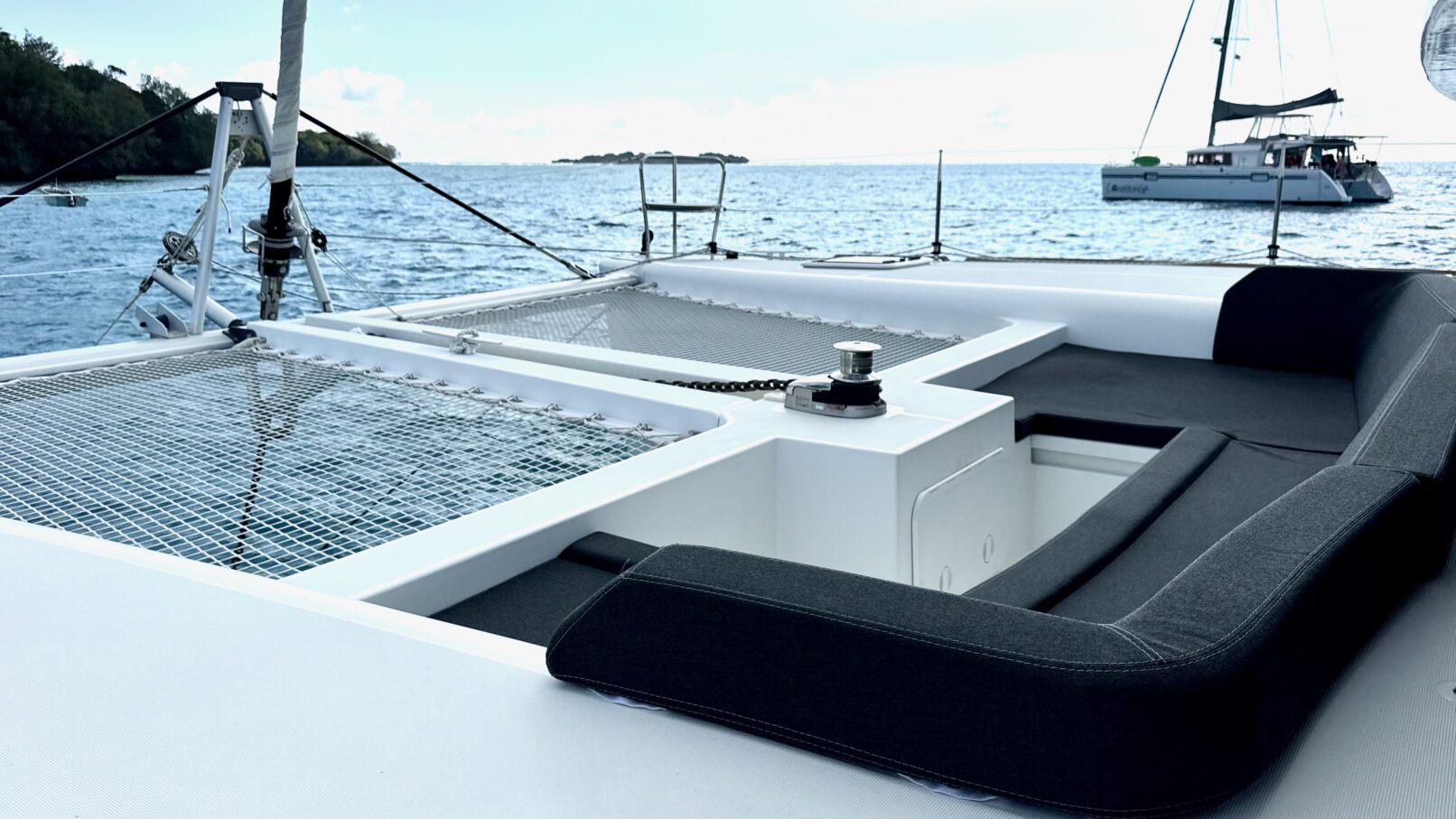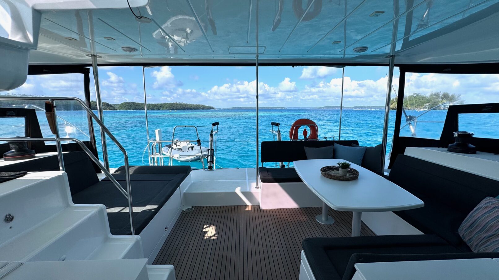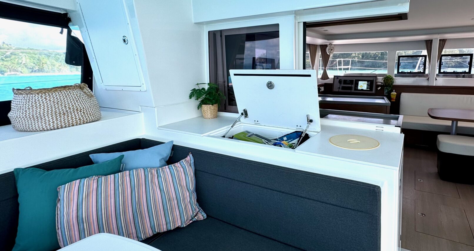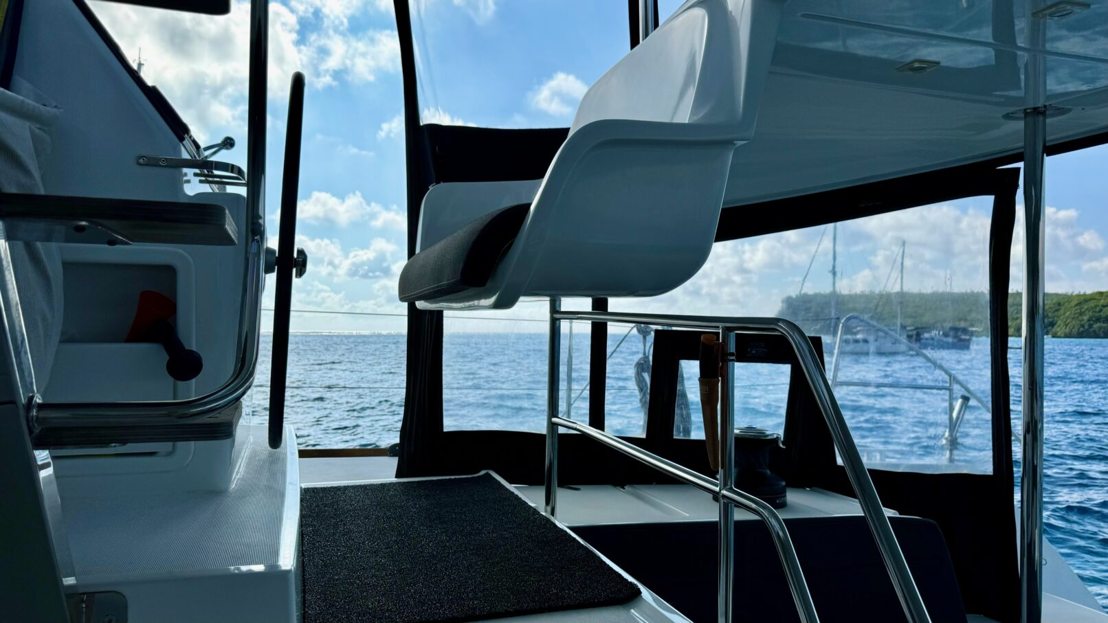 The thoughtfully designed deck layout maximizes both functionality and comfort. The spacious cockpit, sheltered by a sleek hardtop, provides ample seating for alfresco dining and socializing, while wide side decks ensure easy and safe movement around the boat. With convenient access to the helm and plenty of storage, this deck layout is perfect for both relaxed cruising and active sailing.