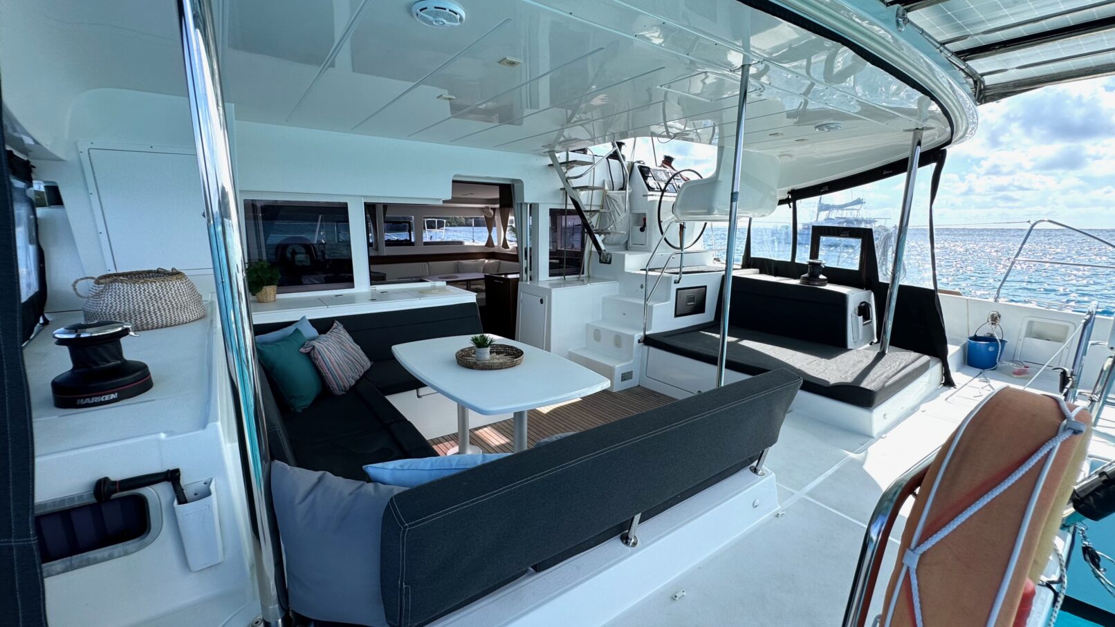 • Large cockpit usable as a deck saloon, protected by a hard top bimini