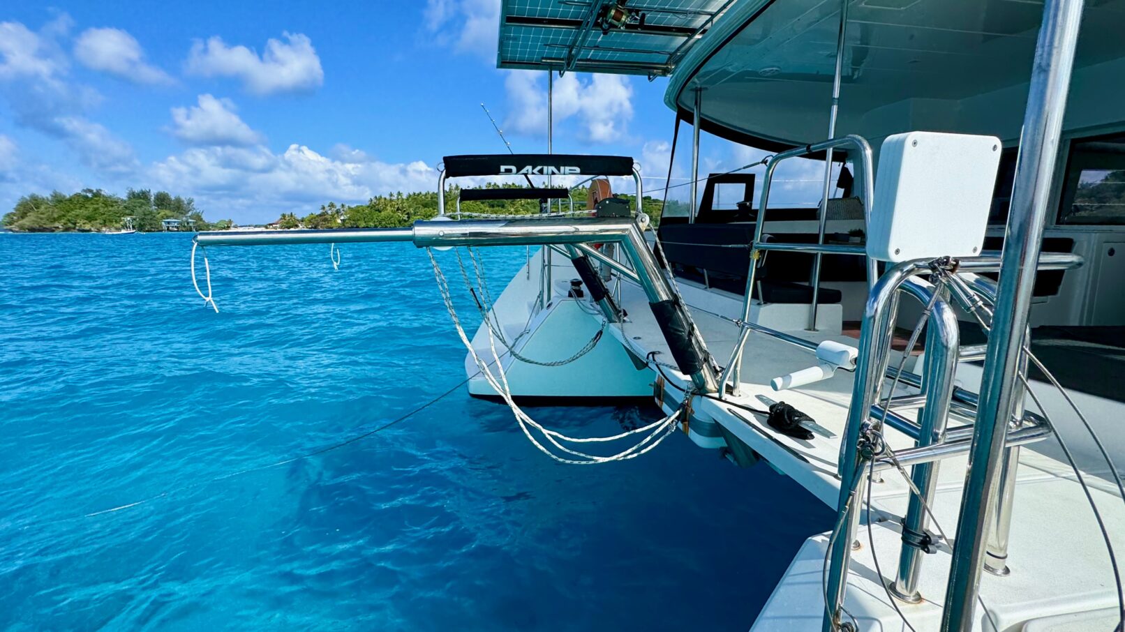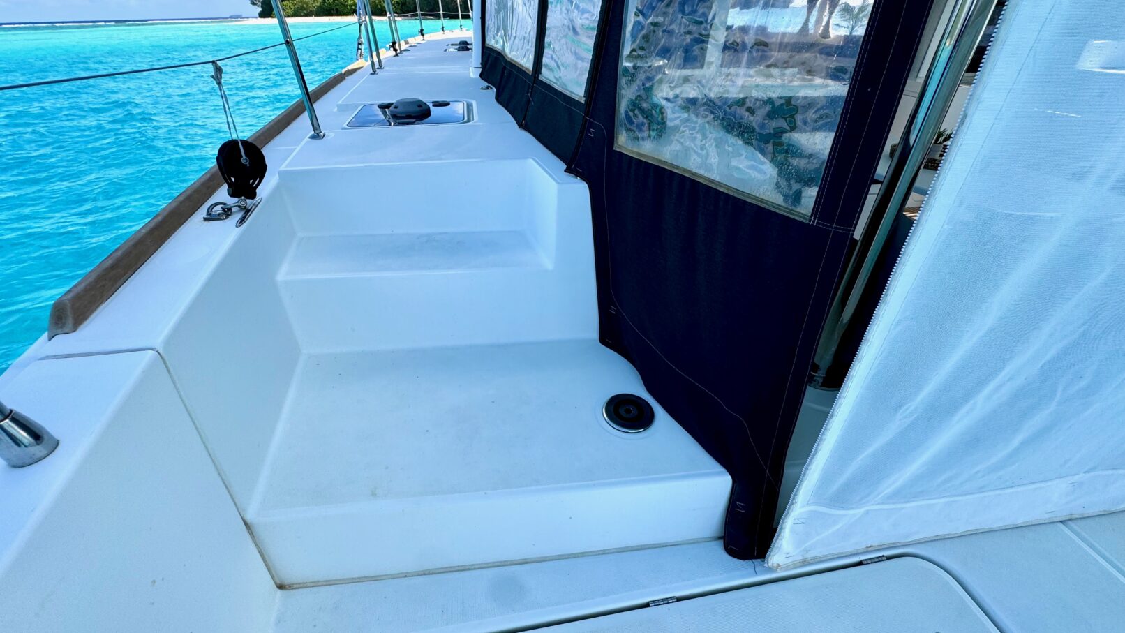 • Access to coachroof via a staircase with teak steps and s/s structure + handrail